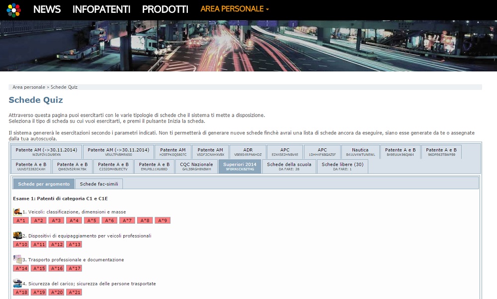 Ricordiamo inoltre che il codice di attivazione contenuto nel libretto SIDA Quiz App SUP permette l'accesso alle schede quiz anche dal sito www.patenteONLINE.it, per cui, l'allievo sprovvisto di smartphone può comunque, grazie ad una connessione internet, registrarsi sul sito www.patenteonline.it, inserire il codice di attivazione e svolgere, on line le schede quiz delle patenti superiori.
